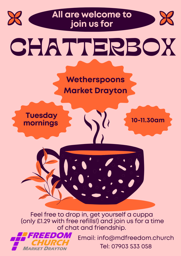 Sunday 29th March – 1030 – Regular service, Festival Drayton Centre, Frogmore Rd, Market Drayton TF9 3AX