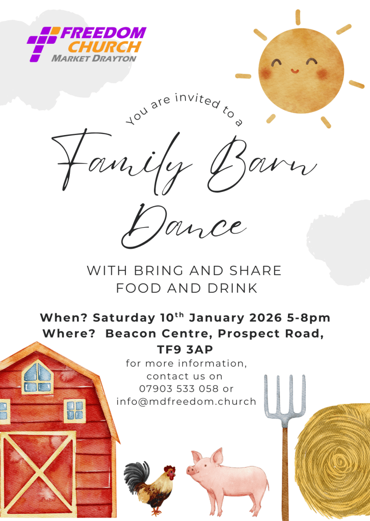 Sunday 25th January – Freedom Church Hinstock Memorial Hall TF9 2SZ